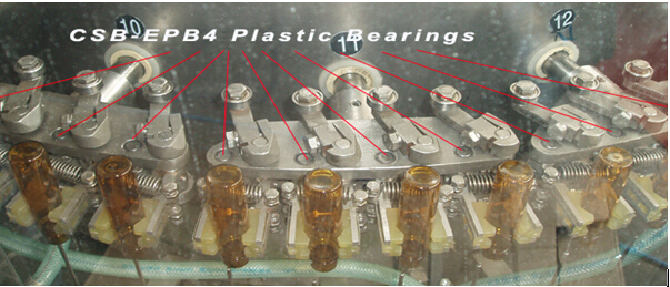 工程塑料軸承:制藥機械中洗瓶機作為洗灌封聯動機組中首要的組成部分具有非常關鍵的作用,洗瓶機質量的好差直接影響到后面連帶的灌裝機和封口機的正常運轉;而洗瓶機關鍵部位為裝有自潤滑軸承的洗瓶夾鉗,洗瓶夾鉗需要長期與清洗液接觸且必須確保每次精準的夾持和翻轉的定位,這就要求自潤滑軸承確保能在清洗液中長期工作不會出現轉動不靈活的現象,而且軸承能確保長期工作耐磨損精確傳動;EPB4工程塑料軸承以其出色的耐腐蝕性能和高耐磨性能在洗瓶機夾鉗轉動部位成為獨一無二的選擇。