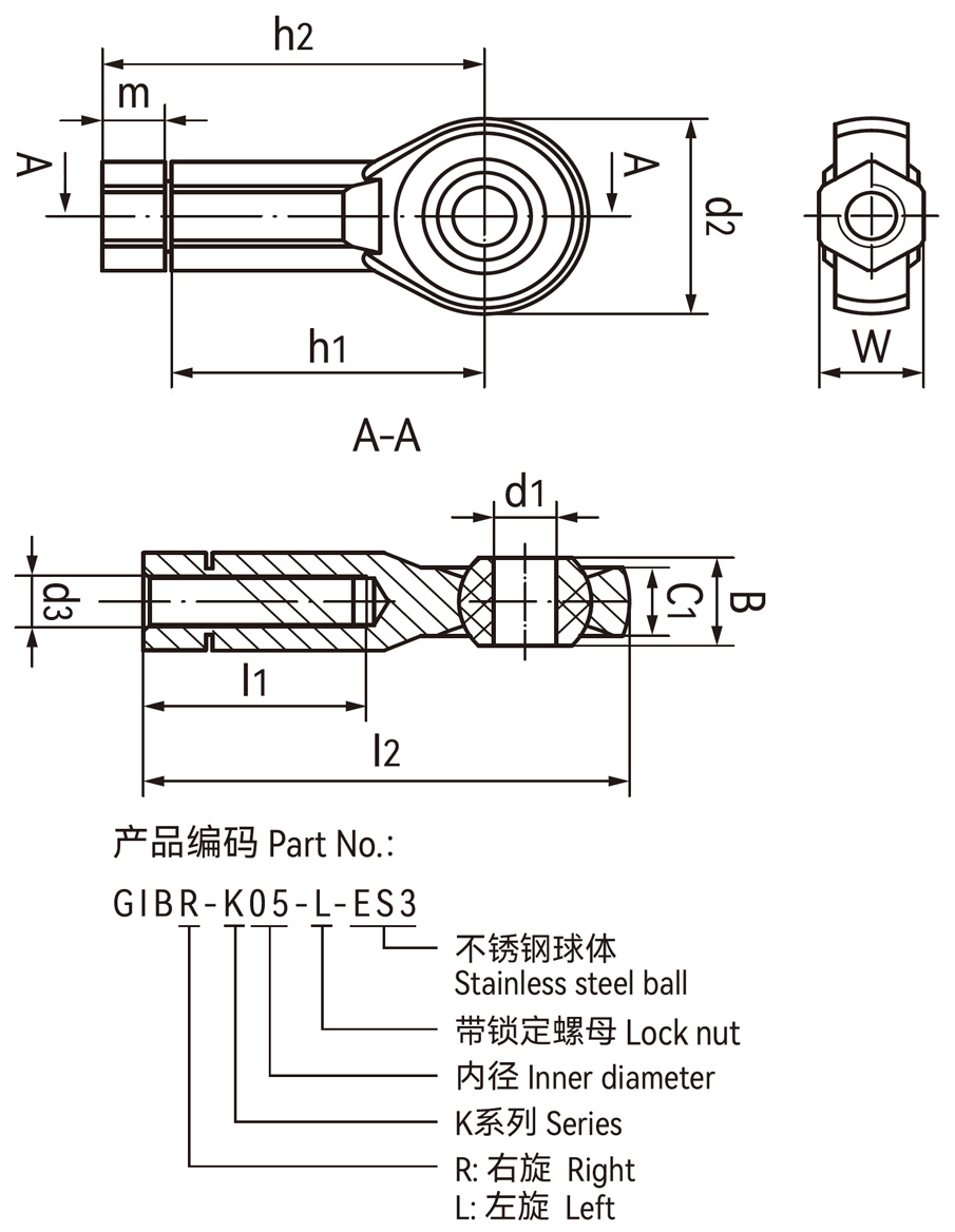 產品編碼 | 最大靜態抗拉強度 | 最大徑向靜態負荷 | 球體最大扭矩 | 重量 | ||