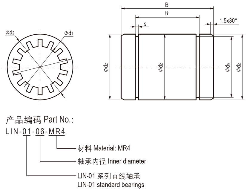 ● 低成本全塑料壓配合直線軸承,無需卡簧;