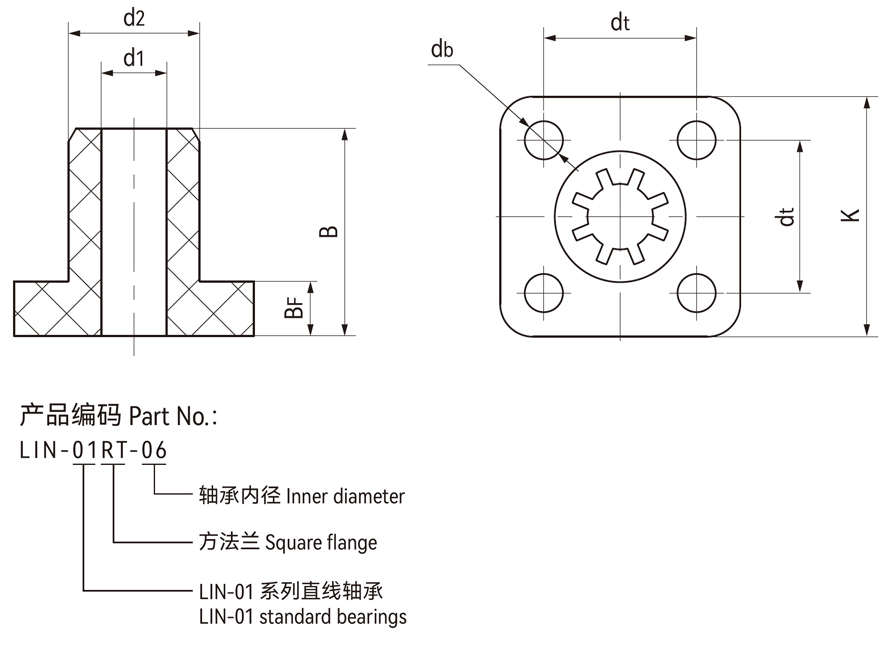 ● 尺寸與LIN-12R緊湊型塑料直線軸承設計相同;