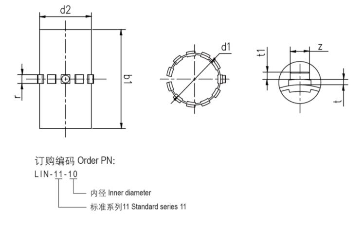 產(chǎn)品編碼 | 軸徑 [mm] | D H7 [mm] | B h10 [mm] | r+0.5 [mm] | t+0.05 [mm] | Z+0.2 [mm] | ![]() |