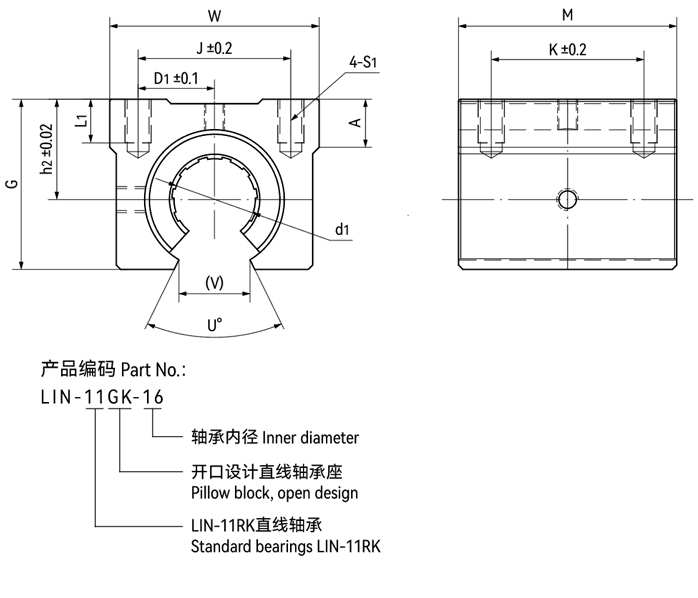 ●內(nèi)部安裝2個(gè)LIN-11RK開口型直線軸承