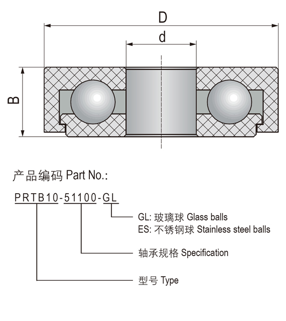 標準配置內外圈材料:改良POM,滾珠材料:玻璃-GL或不銹鋼-ES;