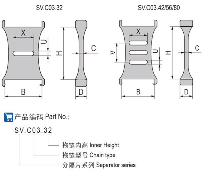 ● 高強度分隔片可穩(wěn)固裝備在塑料拖鏈中